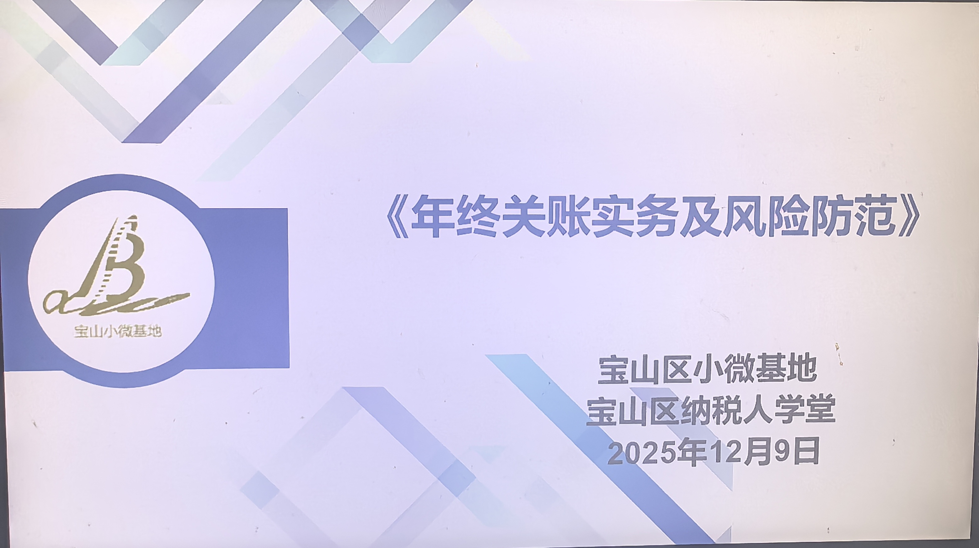 为助力宝山区小微企业提升财税管理水平,有效防范税务风险,12月9日下午1:30 - 3:30,宝山区小微课堂“税、会”联训班第十一期在宝山区铁山路988号三楼会议室(宝山税务大厅楼上)顺利开班。本期联训班以《年终关账实务及风险防范》为主题,吸引了众多小微企业财务人员参加。