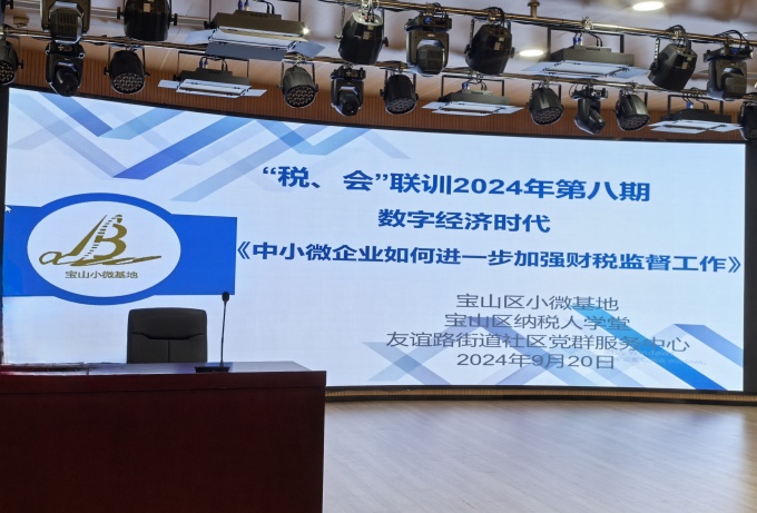 2024 年 9 月 20 日下午,宝山区永清路 899 号 2 楼学习讲堂内气氛热烈,宝山区税务局纳税人学堂与宝山区财政局小微企业财务会计培训咨询基地联合举办的 2024 年第八期“税、会”联训班在此顺利开班。