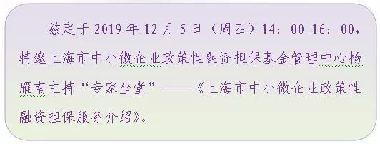 本期“专家坐堂”提问区已开放,欢迎踊跃提问。提问方式:登录“上海财政”网→点击首页“政民互动”→点击进入“在线访谈”-《上海市中小微企业政策性融资担保服务介绍》即可进行提问。(推荐使用IE浏览器浏览)