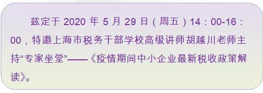 本期“专家坐堂”提问区已开放,欢迎踊跃提问。提问方式:登录“上海财政”网→点击首页“政民互动”→点击进入“在线访谈”-《疫情期间中小企业最新税收政策解读》即可进行提问。(推荐使用IE浏览器浏览)